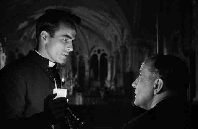 Prete dal passato non propriamente religioso, raccoglie in confessionale il pentimento di un assassino che ha ucciso un'avvocato, ma che non vuole consegnarsi alla giustizia. Il segreto sacerdotale gli impone il silenzio con tutti, anche con la polizia che, alla distanza, sospettando di lui, lo indizia come vero colpevole. Processo.