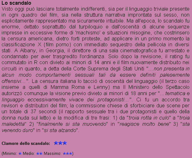 Titolo originale: Carnal Knowledge Anno: 1971 Nazionalità: USA Produzione: Embassy Pictures Genere: Drammatico Durata: 1 ora e 38 minuti Divieto: Minori di 18 anni Premi: Nomination all'Oscar (Ann-Margret: Attrice non protagonista) |