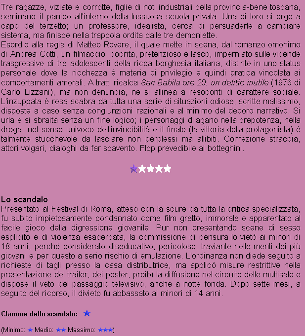 Titolo originale: Un gioco da ragazze Anno: 2008 Nazionalità: ITA Produzione: Colorado Film Production/Rai Cinema Genere: Drammatico Durata: 1 ora e 35 minuti Divieto: Minori di 14 anni (Divieto iniziale: minori di 18 anni) |